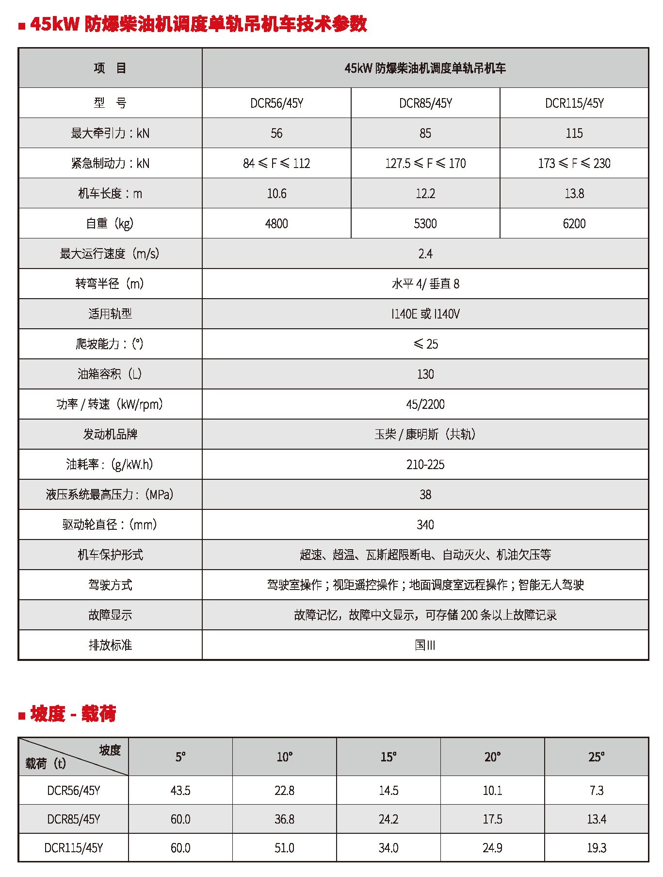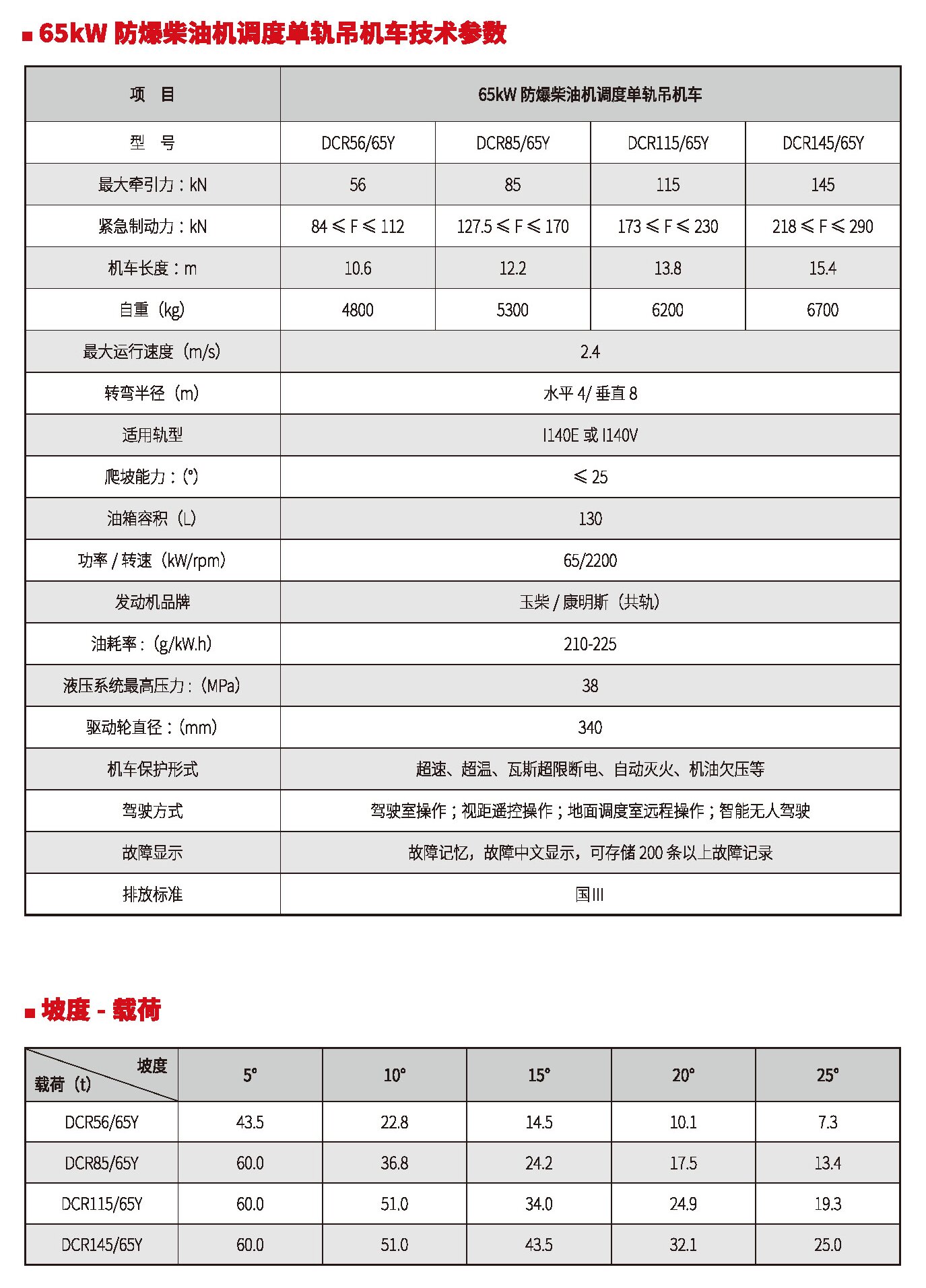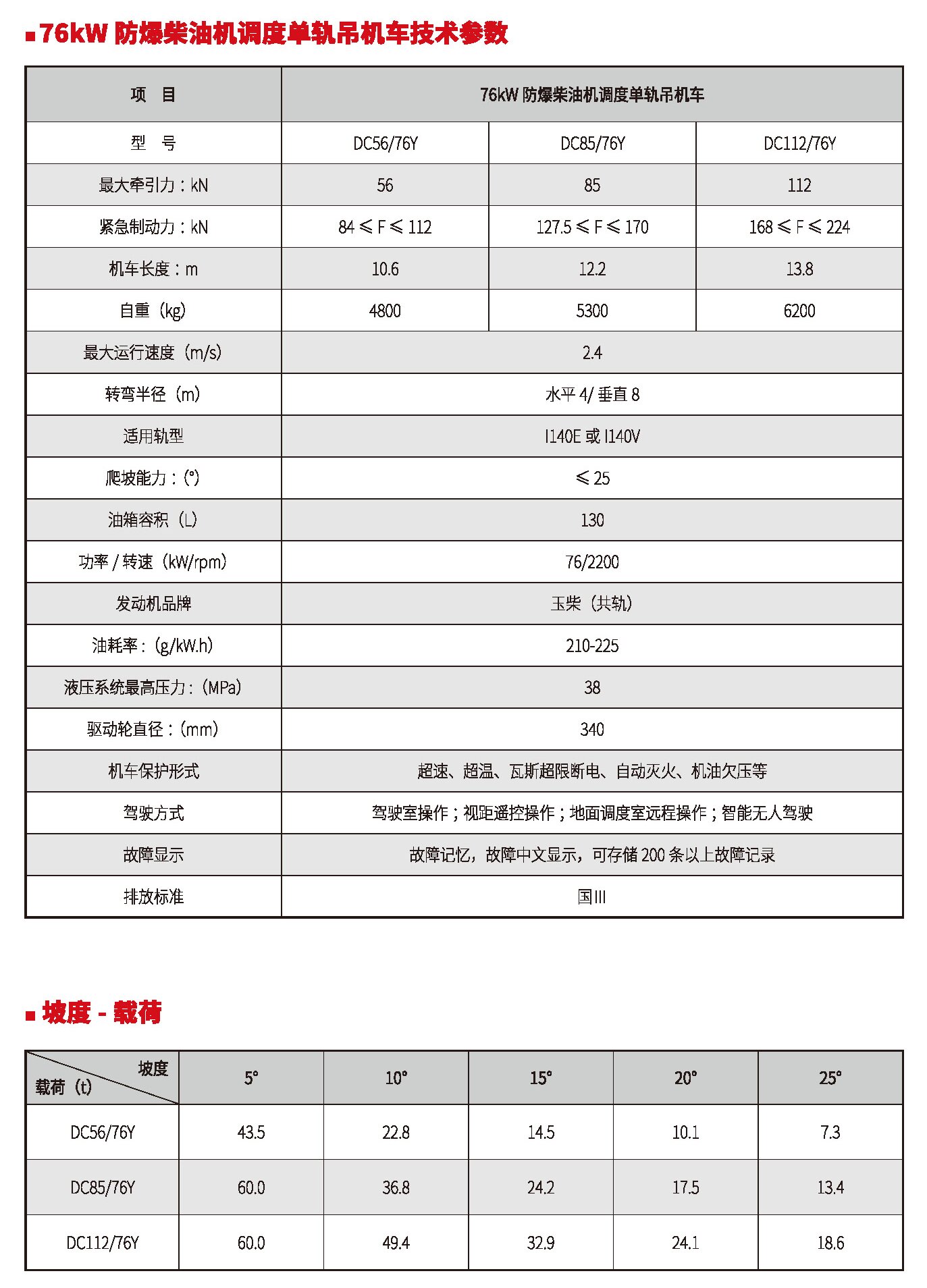 45kW、65kW、76kW防爆柴油機(jī)調(diào)度單軌吊機(jī)車(國(guó)Ⅲ、國(guó)Ⅳ)